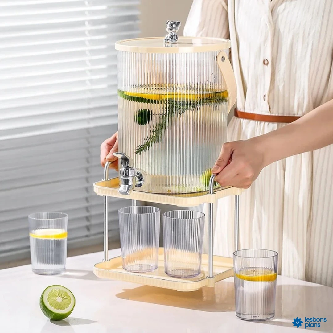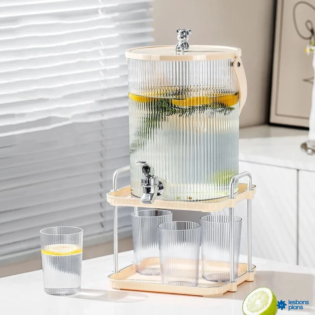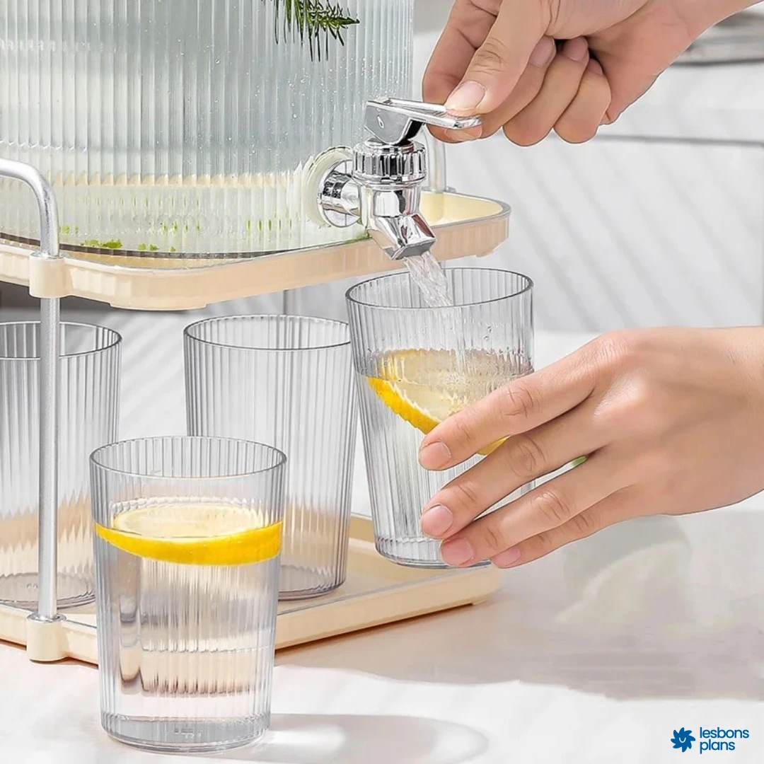 Fontaine incassable 5 litres avec support et 4 verres.