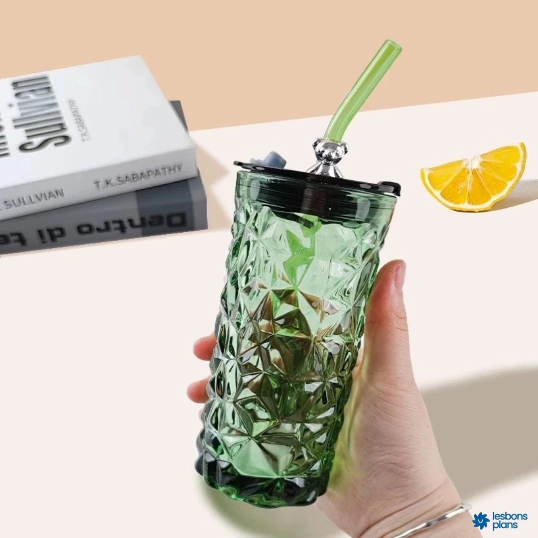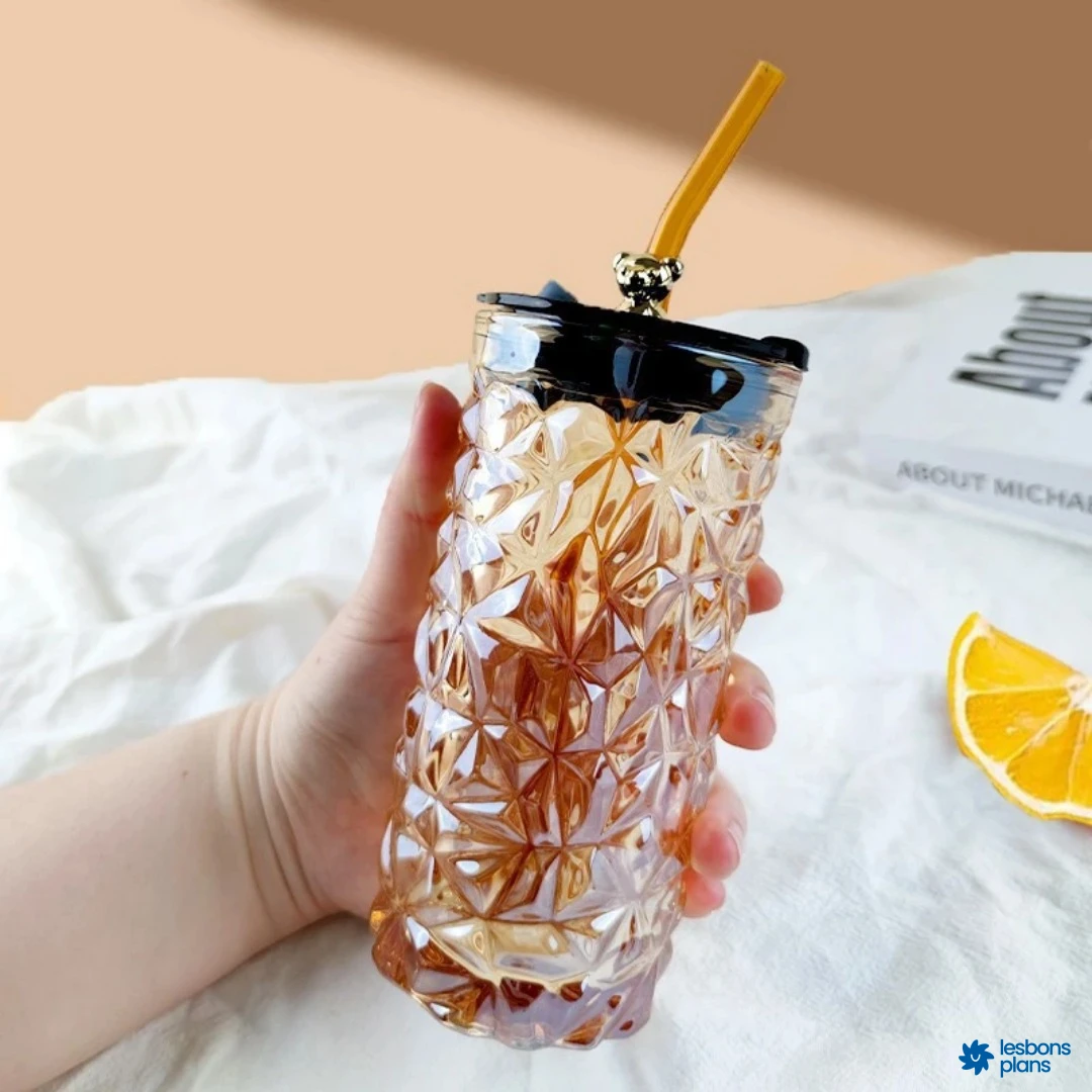 Verre avec paille en verre.