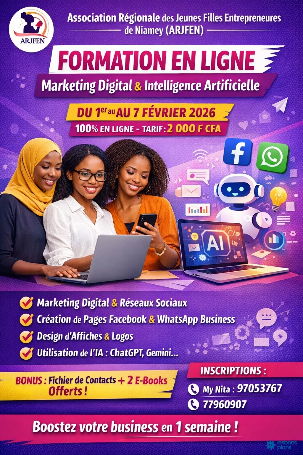 - L’Association Régionale des Jeunes Filles Entrepreneures de Niamey (ARJFEN) organise une formation pratique en ligne pour toutes les jeunes filles et femmes entrepreneures !