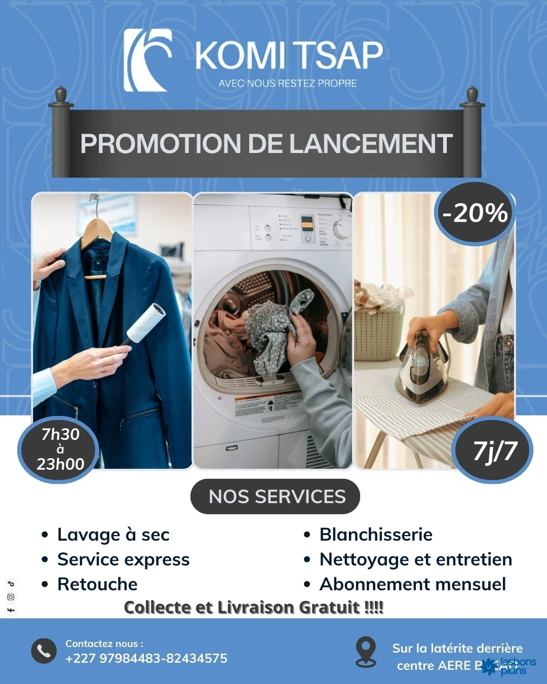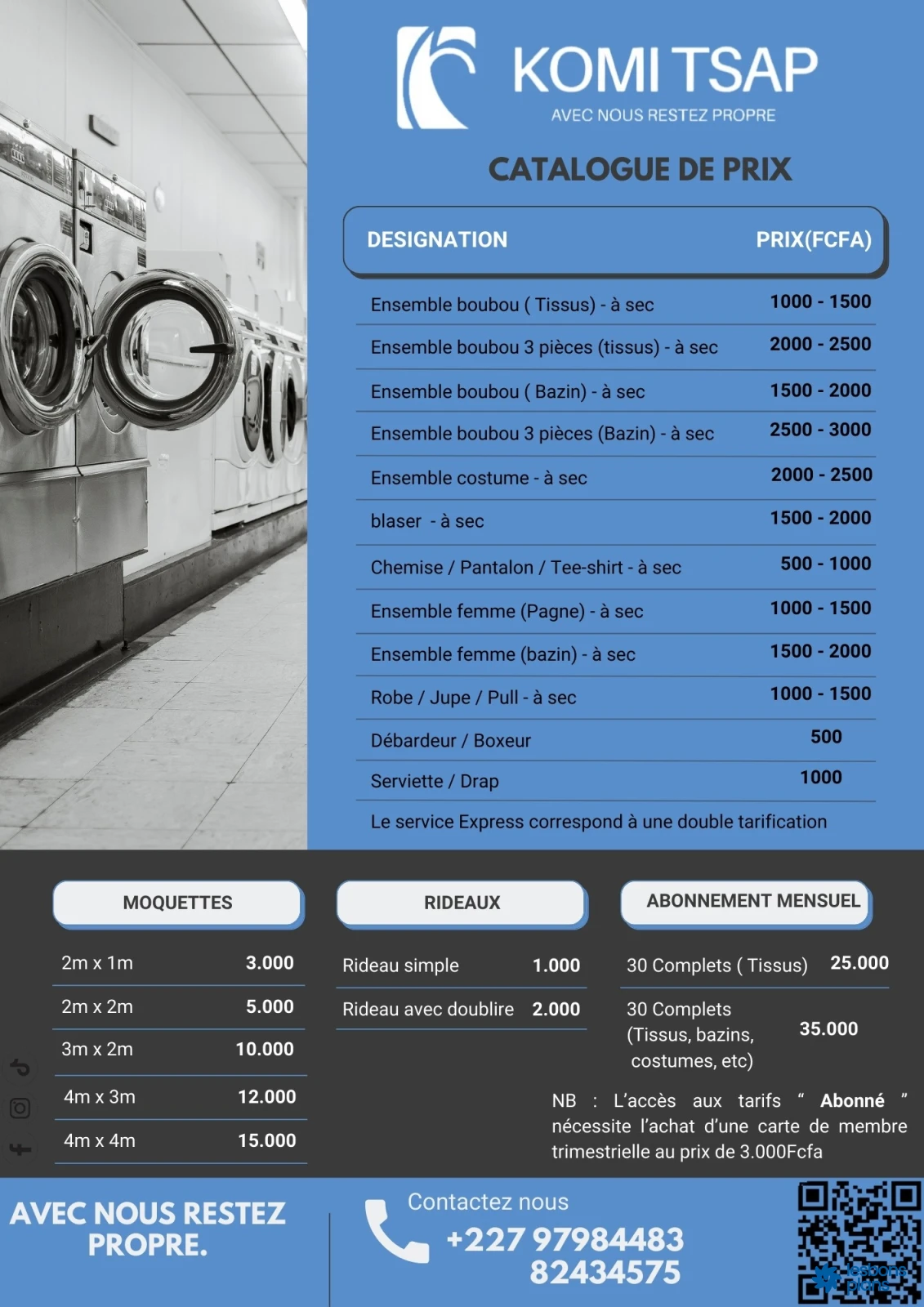 Komi Tsap est une entreprise qui est spécialisée dans le pressing, blanchisserie, retouche, nettoyage et entretien des maisons