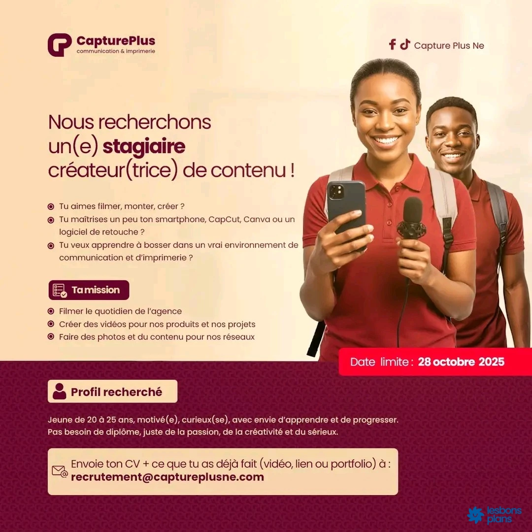📩 Envoie ton CV + quelques réalisations à : recrutement@captureplusne.com